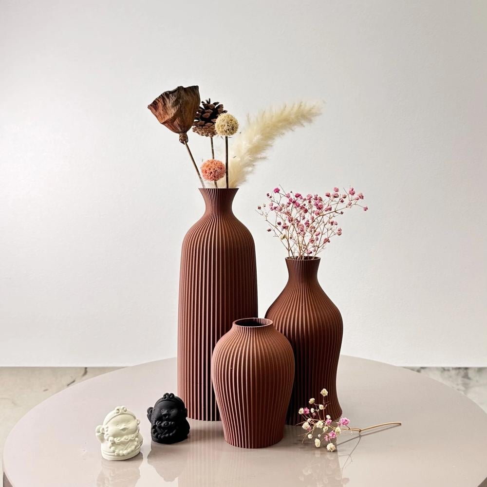 طقم اجمل المزهريات "مخططة" يتكون من ثلاث قطع بتصميم عصري وأنيق، مع خطوط متقابلة تضيف لمسة فنية على أي مساحة. تصميمها البسيط والألوان المتنوعة تجعلها خيارًا مثاليًا لتزيين الطاولات أو الأرفف.